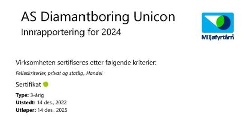 Diamantboring Unicon er Miljøfyrtårnbedrift, og vi oppfordrer alle våre kunder og leverandører til å bli det!